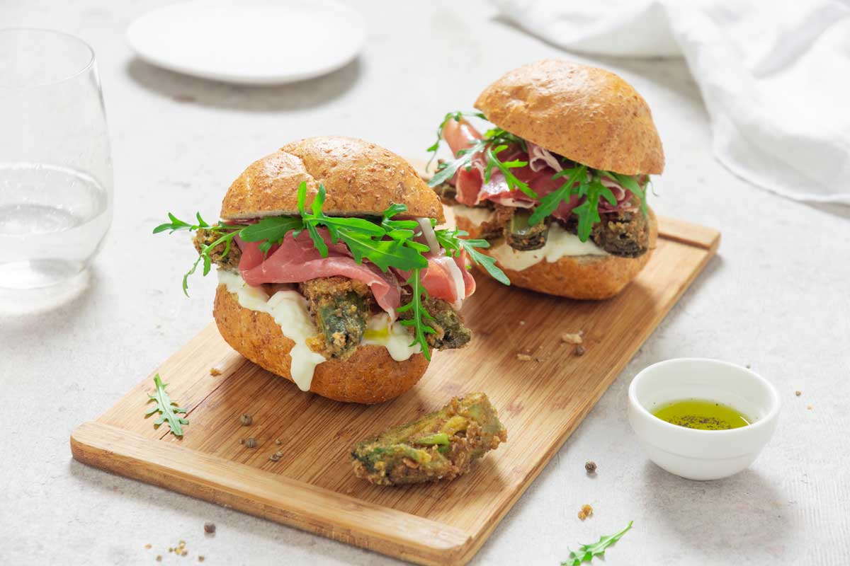Scottona, pancetta croccante, scamorza affumicata, insalata, pomodoro, maionese al tartufo