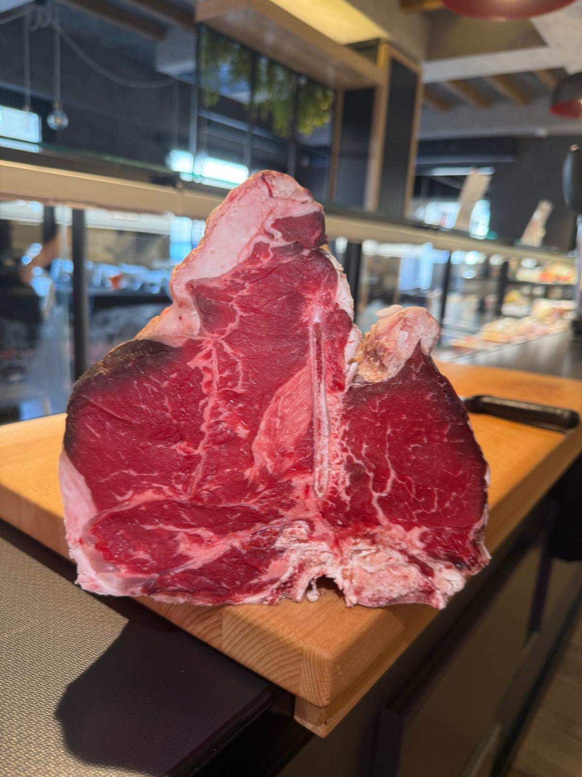 La T-bone o Fiorentina è una bistecca pregiata che si ricava dal quarto posteriore del bovino, caratterizzata dall'osso a forma di "T" che la divide a metà, separando il filetto dal controfiletto. È apprezzata per la sua tenerezza, il sapore intenso e autentico e la fine marezzatura che la rendono succosa.